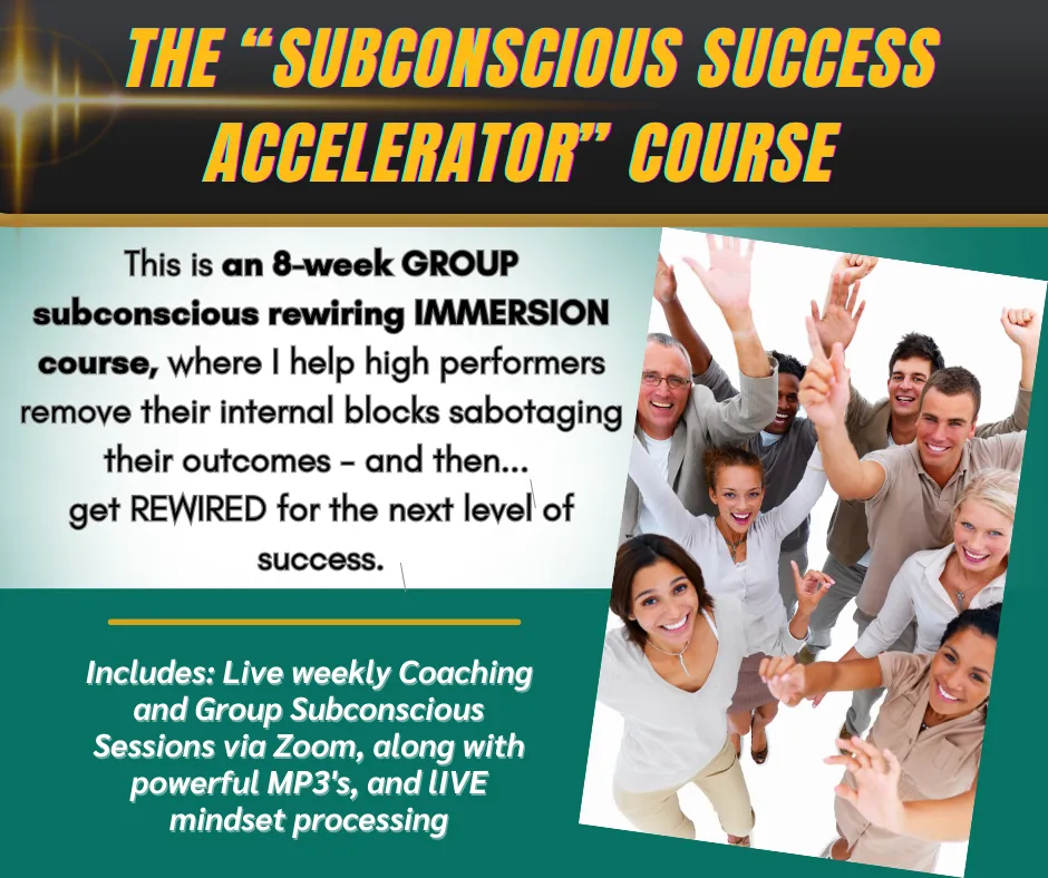 95% of your thoughts, habits, beliefs, and emotional reactions are driven by what’s stored in your subconscious mind. That means no matter how hard you try to “push through” or stay motivated in "traditional training", if your subconscious is wired with fear, doubt, lack or worry, etc.—you’ll keep producing the same results over and over again, hitting the same obstacles, no matter how much "how to" information you learn.
